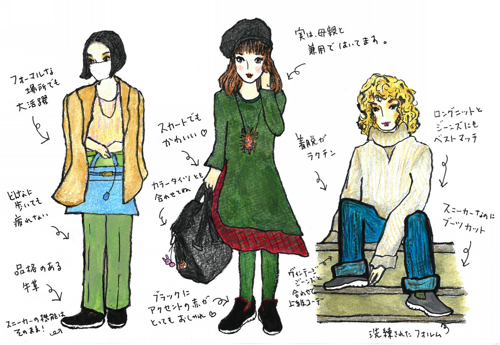 ・スニーカーの機能はそのまま生かされているので、