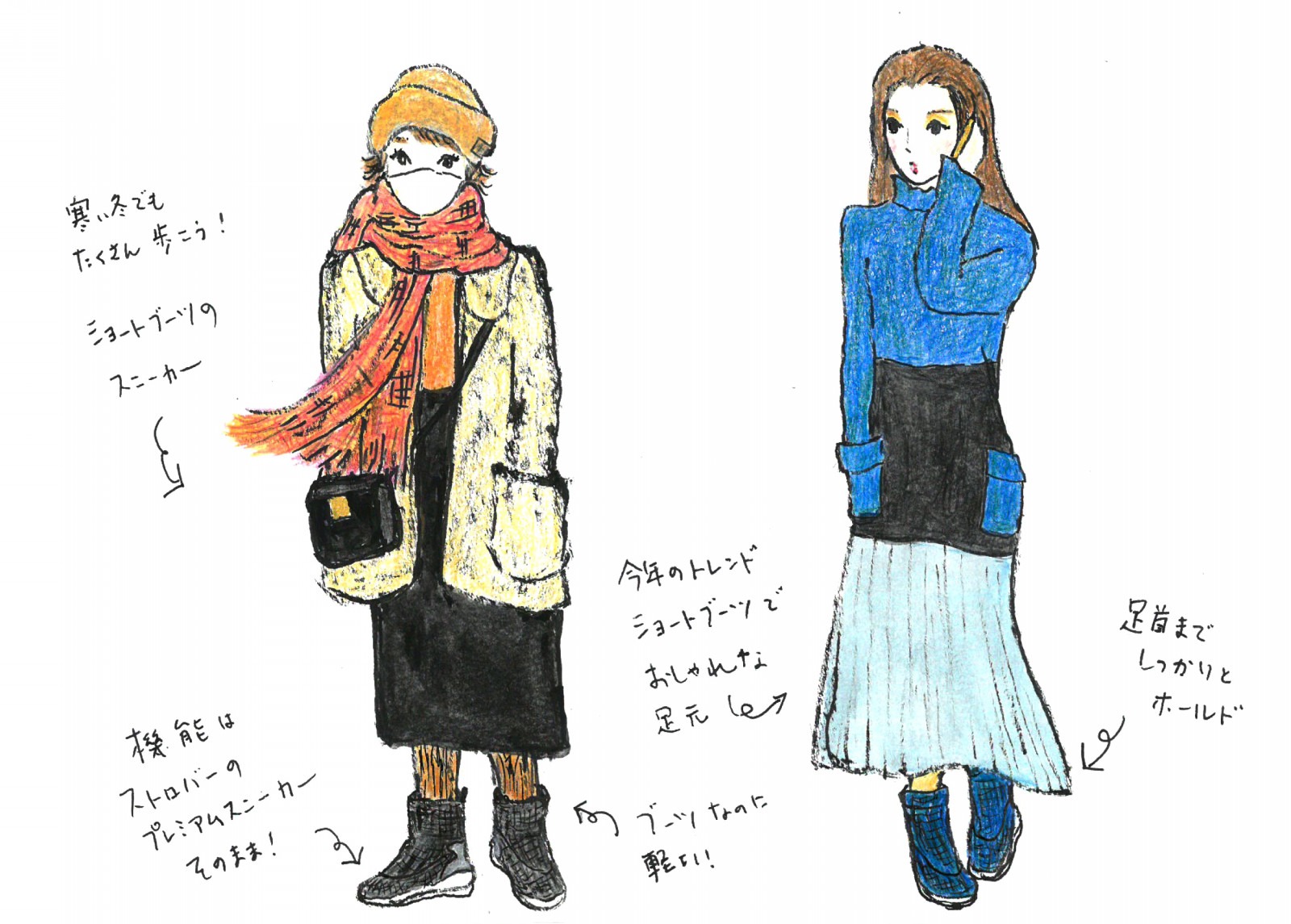 ・ 冬はおしりまでしっかり覆う、ロングコートがおすすめ。