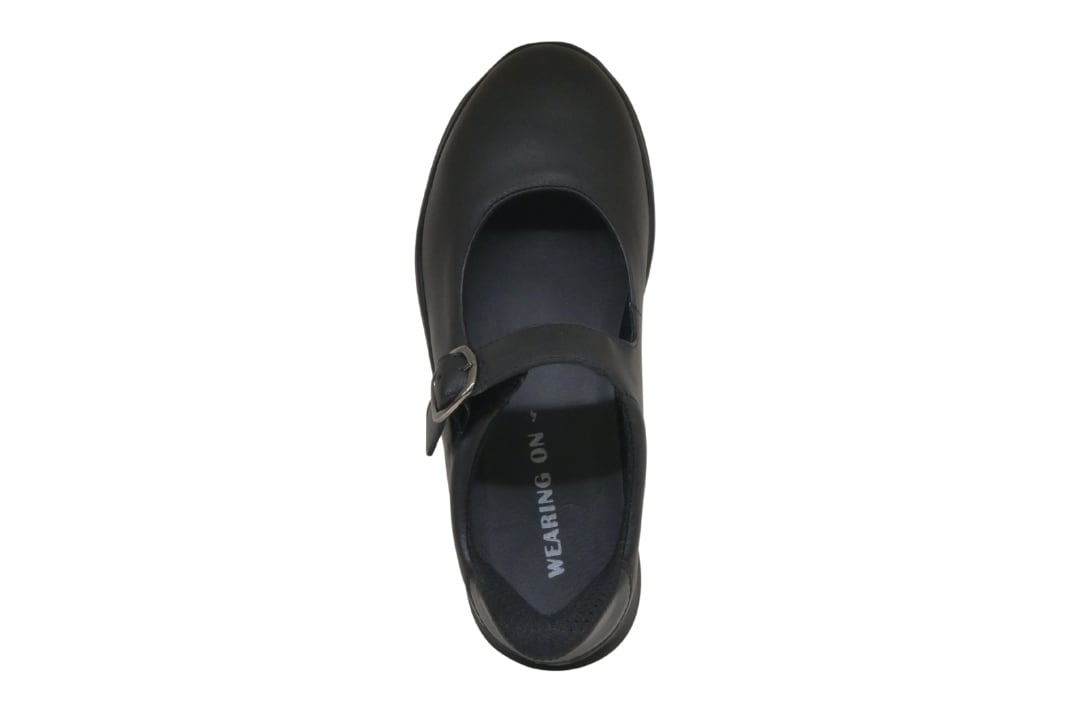 ストラップはバックル付きでフィット感の微調整ができ、かかと周りもソフトな当たりに仕上げているので、脱げにくく安心してお履きいただけます。